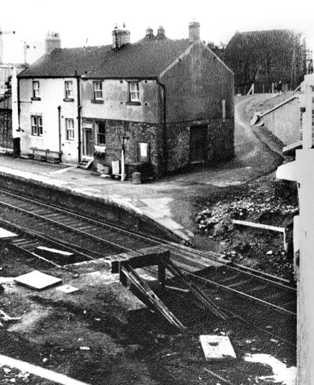 ![]() Looking north-west c1960 at Seaton Delaval. The main building can be seen on the down platform, whilst the up track has been lifted in the foreground, this side of the barrow crossing, and buffer stops installed. This temporary arrangement was needed as the adjacent road bridge was unsafe and required girders on the up side to prevent its collapse.