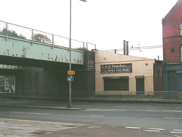 over Smithdown Lane on a bridge and adjacent to it on the west side of the line a street level booking office was provided. Access to the station was via the single storey booking office which had a set of steps behind it that led up to the down slow line (Liverpool direction) platform. As the line was quadruple Sefton Park had four platforms two of them being part of an island. A subway ran from the booking office to the east side of the line giving access to the island platform and the up fast line (London direction) platform. The island platform served the down fast line and the up slow line.
