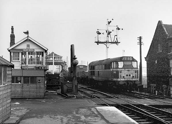Brush Class 2 passing Selby North signal box and Selby swing bridge in March 1965.