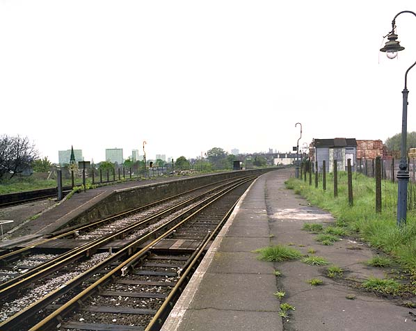 Selsdon Station looking north in Spring 1980, the wooden booking hut can be seen on the right. Note the gas lamps which remained in use until closure in 1983.