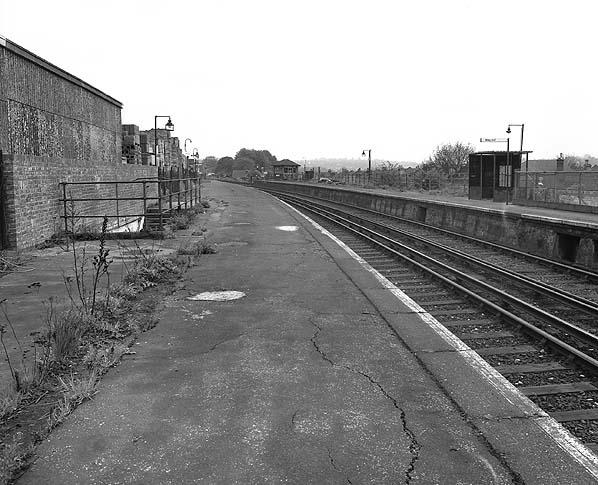 Selsdon Station looking south along the down platform in September 1981. The bus shelter replaced the short station canopies over the subway in the mid 1970's.