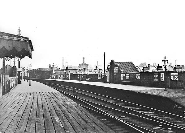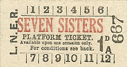 ![]() Seven Sisters Station - Enfield line platforms looking north in c.1906. The canopy on the left is for a covered walkway to the Palace Gates 'up' platform. Copyright photo from John Alsop collection