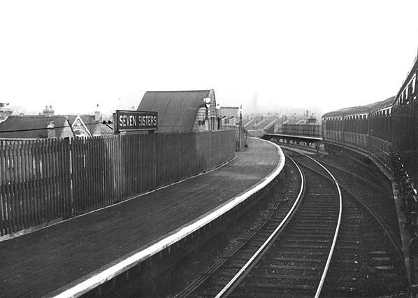Seven Sisters Station looking north west towards Palace Gates in April 1955