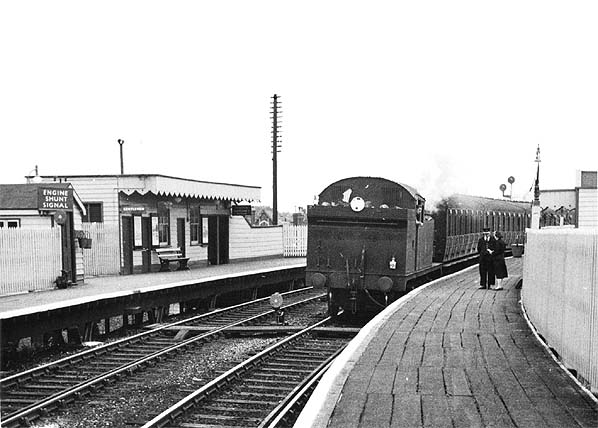 Seven Sisters Station looking south east in June 1956. A Palace Gates train hauled by an N7 is seen.