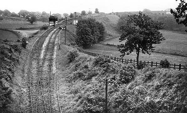 Photo by DJ Norton Birmingham ![]() Looking south west towards Severn Bridge station from above the tunnel in May 1964. The surviving part of the bridge is seen top right.