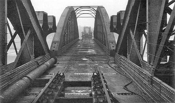 Two bridge spans collapsed into the river after two fuel tankers hit one of the bridge piers on 25 October 1960. This view is May 1964, compare with the picture above taken the day after the collision.