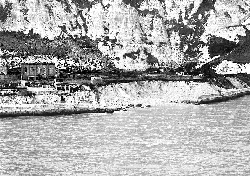 ![]() The former Shakespeare Colliery site circa early 1950s. The large building seen on the left is the colliery boiler house, now devoid of its chimney. Buildings close to the lower cliff top date from WW2; that to the left overlooking the sea is one of the coast artillery searchlights. The railway cottages are seen to the left of the Akers steps.