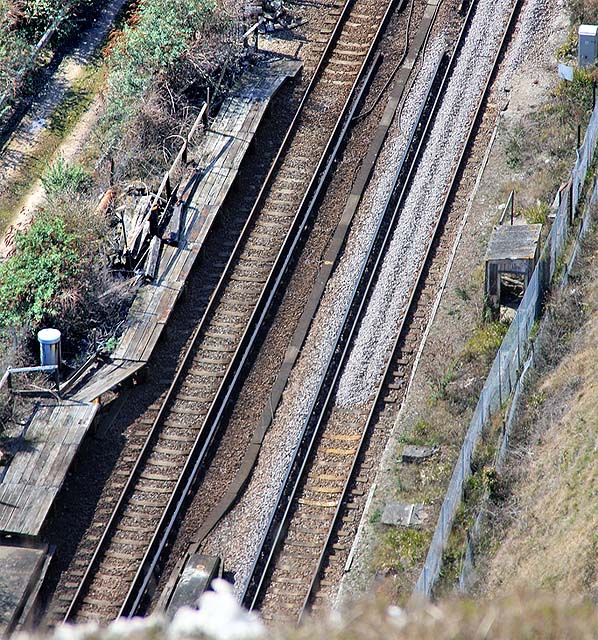 Photo by David Glasspool from Kent Rail,web site ![]() Photo by Nick Catford ![]() The disused platforms seen from Shakespeare Cliff in March 2009.