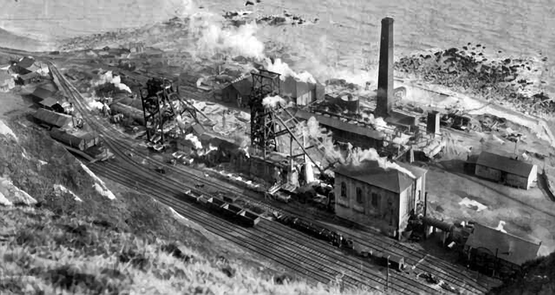 Looking down on Dover Colliery from the ciff top c1910. The miners' platform can be seen in front of buildings alongside the main line.