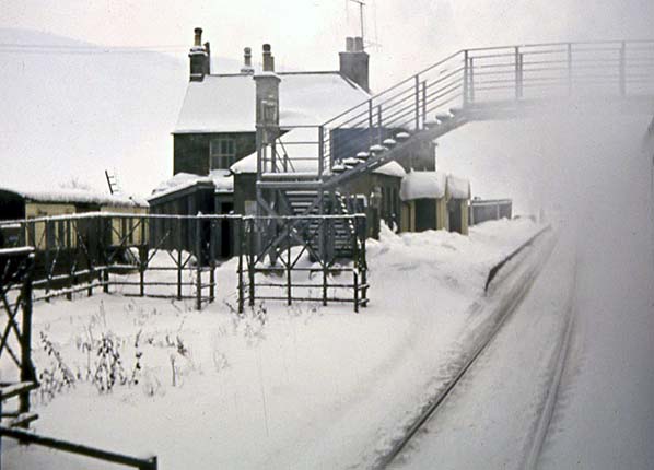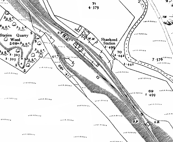 Shankend station was downgraded to the status of an unstaffed halt from 3 July 1961 although the word ‘Halt’ never appeared on tickets or signs or in timetables. Goods services were withdrawn on 28 December 1964 but the station remained open for passengers until closure of the line in 1969.