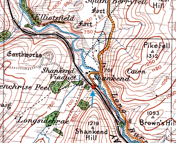 Notes: As with many of the stations on the southern section of the Waverley route, Shankend did not serve any sizable community, relying on both passenger and goods traffic from isolated farms and houses. The station is named after Shankend Hill to the south. It was sited at the southern end of the 15-arch Shankend Viaduct.