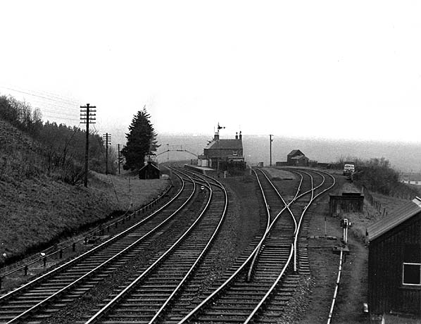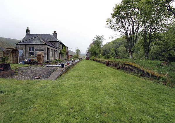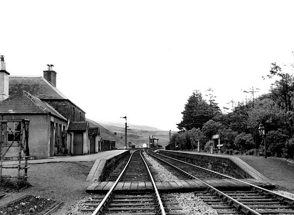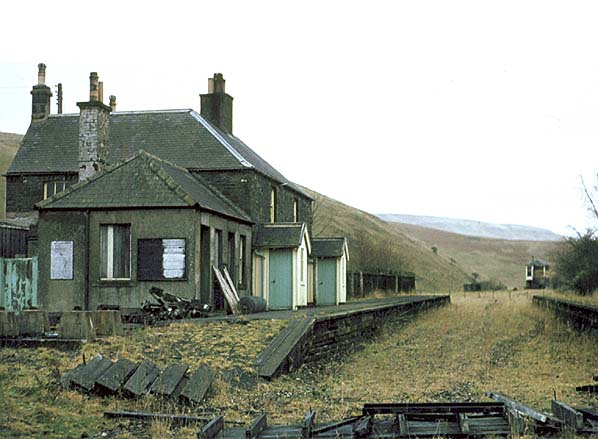 A signal box opened at the south end of the up platform on 20 July 1888; this was replaced with a new box on the up side, 100yd south of the station, on 24 January 1916. This controlled access to the goods yard on the up side behind the up platform, which comprised three loop sidings, with access from both directions. One of the sidings served a cattle dock. A loco was often kept in the goods yard and used for banking on the climb up to Whitrope.