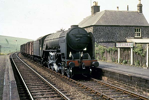 One notable working in later years was a daily Halewood (Liverpool) to Bathgate freight train carrying Ford cars on carflats. Due to the heavy load, the booked motive power was a Gresley V2 and a Stanier Class 5 double-headed, usually with the V2 on the front.