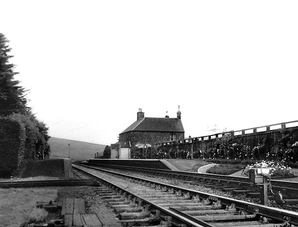 Shankend station looking north in 1953. Note the short section of rail at right angles to the down line. This was for a platelayers' pump trolley.