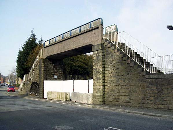 Shaw & Crompton station footbridge in April 2010.