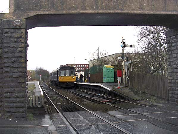 ![]() A Manchester DMU about to leave Shaw & Crompton station (looking north) in December 2005