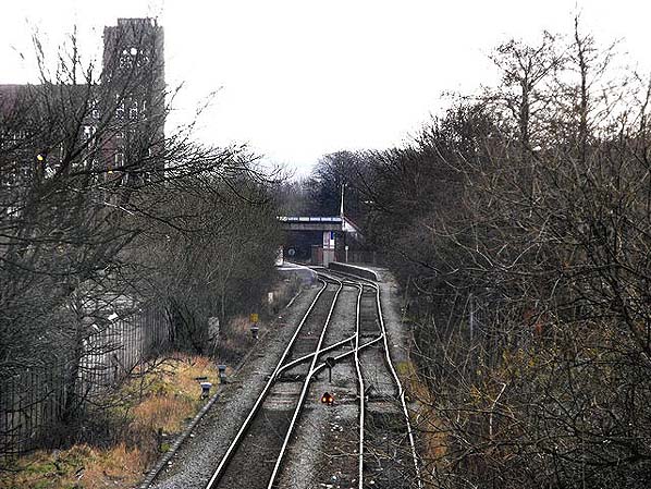 ![]() Looking south from Linney Lane bridge towards Shaw & Crompton station in December 2008.