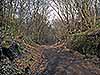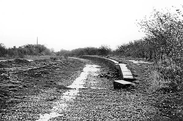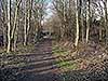 Looking south-east towards Campion Way in February 2016 along the route of the former Rochdale to Bacup railway. Shawclough & Healey station site is ahead of the camera. At approximately the point from which the photo is taken Harridge Siding diverged to serve the eponymous asbestos factory. The site of the station’s goods yard is the left of this view.