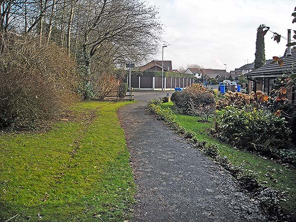 Photo by Alan Young ![]() Looking north-west towards the site of the passenger station of Shawclough & Healey in February 2016. It is long demolished and Columbine Close has been built in its place.