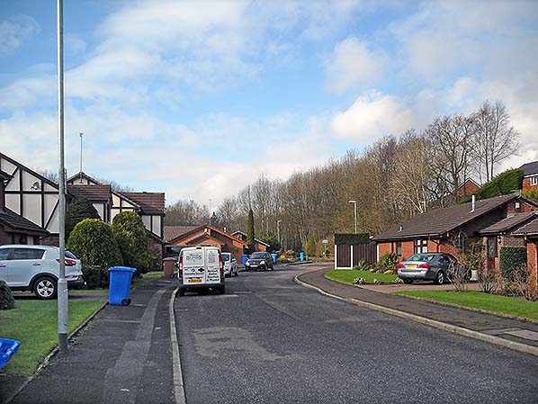 Looking west along Campion Way in February 2016. The goods yard of Shawclough & Healey station occupied this site, with the passenger station to the left, off the picture.
