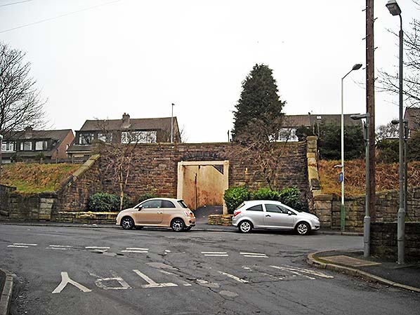 The subway at Shawforth seen from Quarry Street is seen in January 2016. The station booking hall formerly stood in front of the subway entrance.