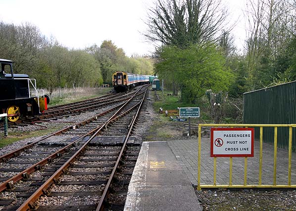 ![]() Looking north from Shepherdswell Station in April 2008. 'Richborough Castle' diesel shunter is seen on the left with a Class 412 BEP in the background.