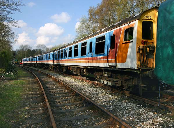 Looking towards Shepherdswell Station in April 2008. A Class 412 BEP 7105 is seen on the right.