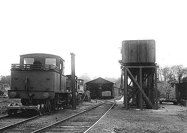 ![]() Shepherdswell engine shed in 1930. The company's workshop can be seen between the shed and the water tower which received its supply from a reservoir on high ground to the right of the shed.