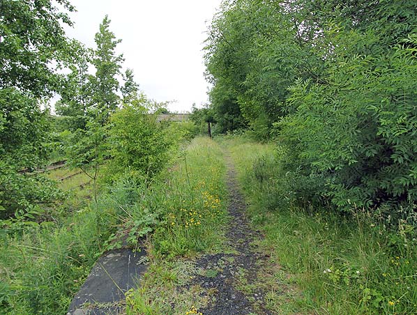 Looking north along the goods dock at Sherburn Colliery in June 2011. Front Street bridge is in the distance and the base of the two-ton goods crane is seen on the dock.