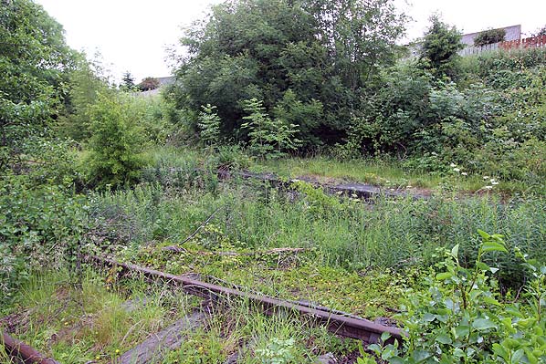 Looking east at a section of the goods dock in June 2011. The siding between the dock and the up line was lifted in the 1960s.