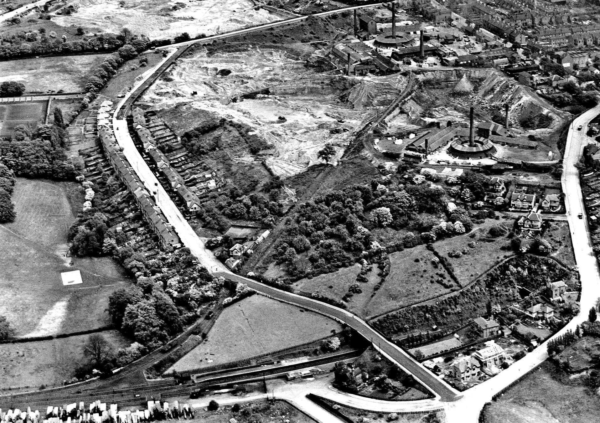 Station Name: SHERWOOD![]() Sherwood station in May 1938. The station buildings on both platforms show recent signs of demolition following the singling of the whole route between Trent Lane, Nottingham and Daybrook. The stationmaster's house is seen bottom right and between the house and the platform the lamp room can just be made out. The cattle dock is seen behind the north end of the up platform. On the far right, near the bend in the road the north portal of Sherwood tunnel is seen at the end of the cutting. Sherwood Vale bridge is seen on the right and further along the road is the bridge over the bottom end of the Mapperley Brickworks incline. At the bottom of the incline there are exchange sidings where LNER rails met 'end-on' here with those of the Nottingham Patent Brick Company. Ascending and descending trucks were controlled from a small brick built hut.
