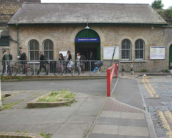 The morning rush at Shoreditch Station in June 2006. Shoreditch was one of the least used stations on the LU network. Photo by Nick Catford