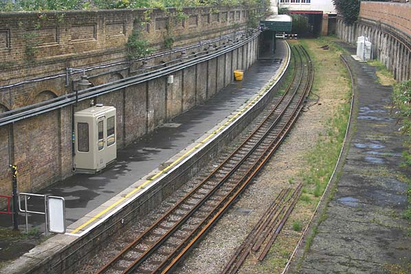Looking north at Shoreditch Station three weeks after closure. All the signs have gone and the track is rusty but little else has changed.