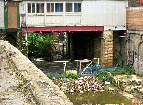 By October 2007 the cutting had been largely infilled leaving a few degraded sections of platform at the west end. The blocked doorway from the steps up from the platform can be seen on the left. Photo by Paul Dunn