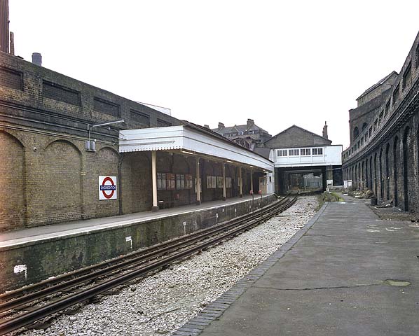 Looking north from the disused southbound platform at Shoreditch Station in February 1982 Photo by Nick Catford