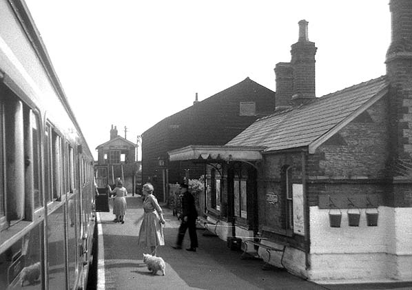 Sible & Castle Hedingham Station in Spring 1960 - seen from the back of a railcar Photo by Peter Graham Berry - received from the Colne Valley Railway Preservation Society