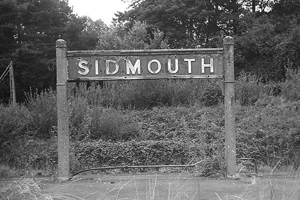 Sidmouth station in August 1969. This concrete ‘running-in board’ is of Southern Railway vintage