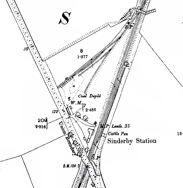 Intermediate stations were opened with the line at Wath (later renamed Melmerby), Baldersby and Topcliffe. At Thirsk the line passed over the YN & B to a terminus close to the centre of the town, with the YN & B station being over a mile to the west of the town.