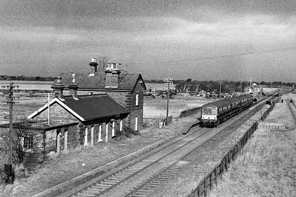 Notes: Initially the station had one low platform. This was rebuilt and lengthened (the low part of the platform remained in front of the station building) with a second platform being added when the line was doubled in 1901; the two platforms were slightly staggered. In 1853, a year after the station opened, there were two railway employees at the station: Henry Bell was the stationmaster earning £50 per annum, and there was 1 porter Jas. Elliot, earning 10/- per week.