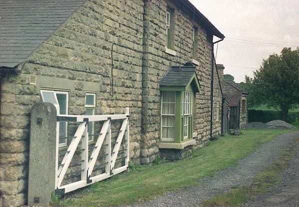 Entrance to Sinnington Station in June 1998. Two railway cottages are seen on the left with the weigh office behind them.