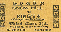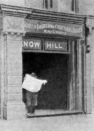 On 1st January 1866, L C D R passenger trains began running into the Metropolitan's Farringdon Street station and the connection was soon carrying a wide variety of passenger and freight services. Then, by an Act of 13 July 1871, the Chatham became committed to yet another project. A nominally independent Holborn Viaduct Station Company (for the bankrupt Chatham was not allowed to raise capital) was authorized to build a 292 yard branch from the Ludgate - Farringdon line to a new terminus, complete with hotel, fronting on the new thoroughfare of Holborn Viaduct. It was opened on 2nd March 1874. On 1st August 1874 a low-level station, Snow Hill ('Holborn Viaduct Low Level' from 1912), was opened at the foot of the 1 in 39 incline.