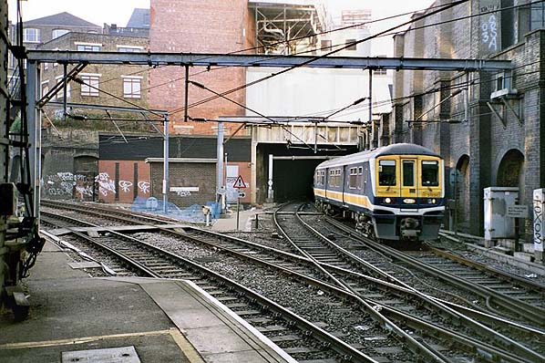 train seen emerging from the Snow Hill Tunnel from the south end of