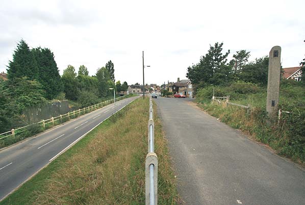 Looking west along Station Approach in September 2007 - Somersham Station was to the right of the level crossing. The abutment for the bridge over Chatteris Road can be seen on the left.