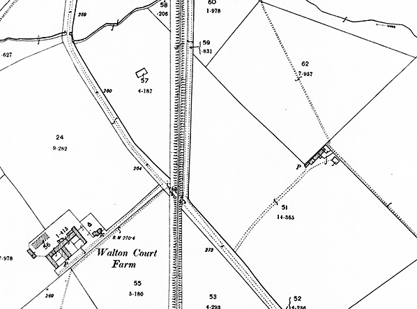 Copyright photo from Stations UK ![]() ![]() 1899 1:2,500 OS map. This map shows the site of South Aylesbury Halt before there was any development of the area. At this time the crossing was a road crossing but by 1921 it had been closed to road traffic.