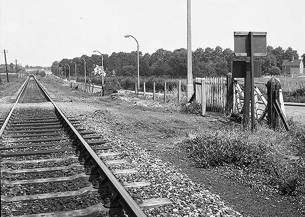 ![]() Looking along Mandeville Road towards the foot crossing and the site of South Aylesbury Halt c1969. After closure the halt was quickly demolished leaving no evidence that it ever existed.
