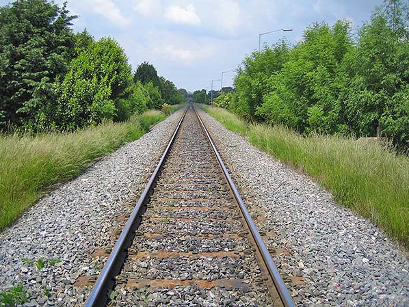 Photo from John Mann collection ![]() Looking north at the site of South Aylesbury Halt from the foot crossing linking Mandeville Road and Old Stoke Road in June 2006. The crossing was closed in 2017.