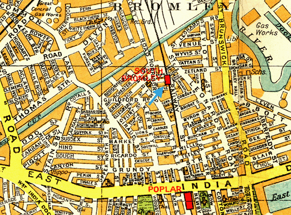 the south side of Bow Road, the original Bow Station having been on the north side; there was no direct replacement for South Bromley which was some distance north of the current Langdon Park station.