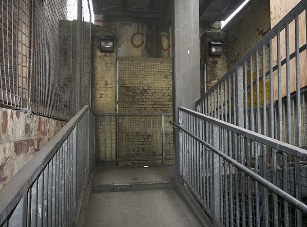 The footbridge that spanned the north end of South Bromley Station (March 2009)