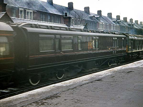 On 6 March 1964 the Royal Train is passing southwards through South Gosforth taking Prince Philip to Monkwearmouth. The train was stabled overnight at West Gosforth, to the west of the car sheds.