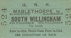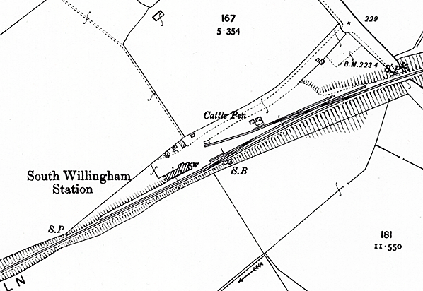 Notes: The station opened as South Willingham with Hainton being added in 1877. The station had a single platform on the down side of the line with the main station building at the east end of the platform incorporating the stationmaster's house and booking office. The station was always known as South Willington and Hainton although the station sign as seen in photos below, called it Hainton and South Willington.